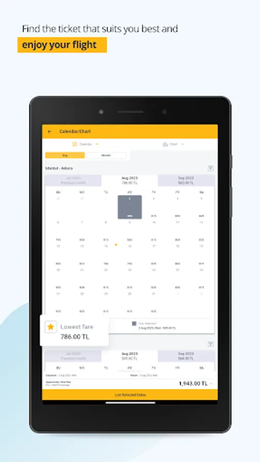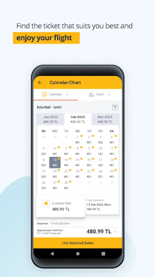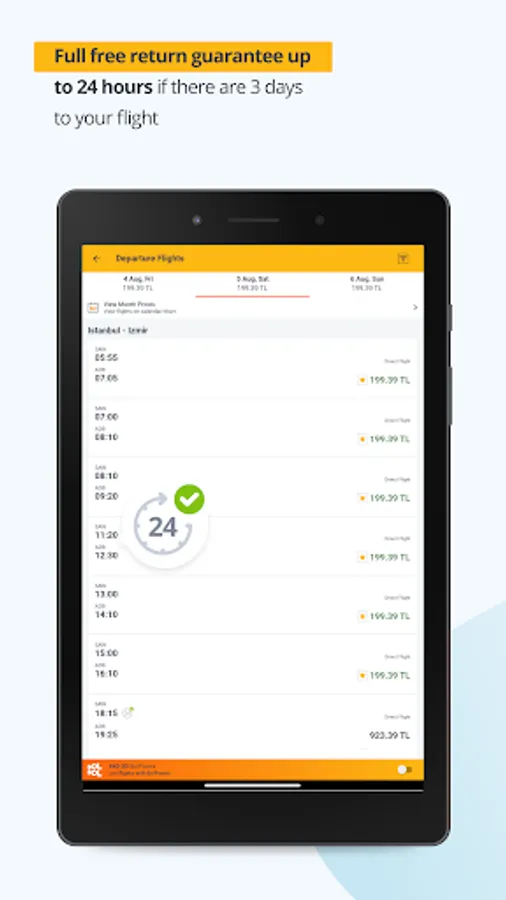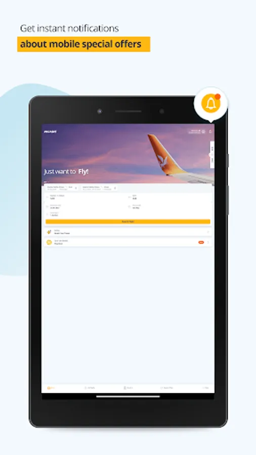 Flight search on the app monitors cheap flight tickets for the specified dates just with a click.