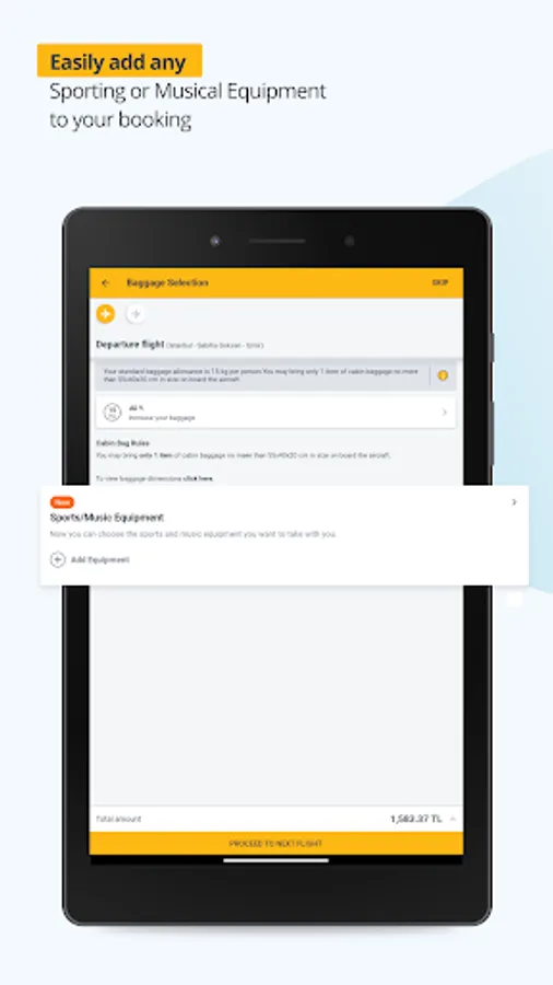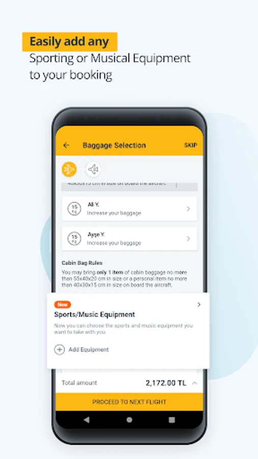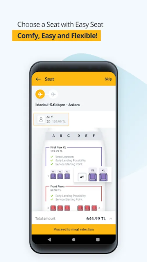 Complete your flight reservation with easy payment steps. Pegasus App keeps your personal and financial details private during payment steps. Encrypted data on the app enables secure payment with a fast connection to your selected bank. You can prefer credit cards or payment orders from several options to buy your airline ticket. Pegasus app helps you freeze the ticket price if you don’t finish the payment immediately. You can pay in any currency of your choice.
