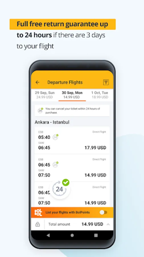 Book international flights or a ticket to domestic airports using your BolPoints.