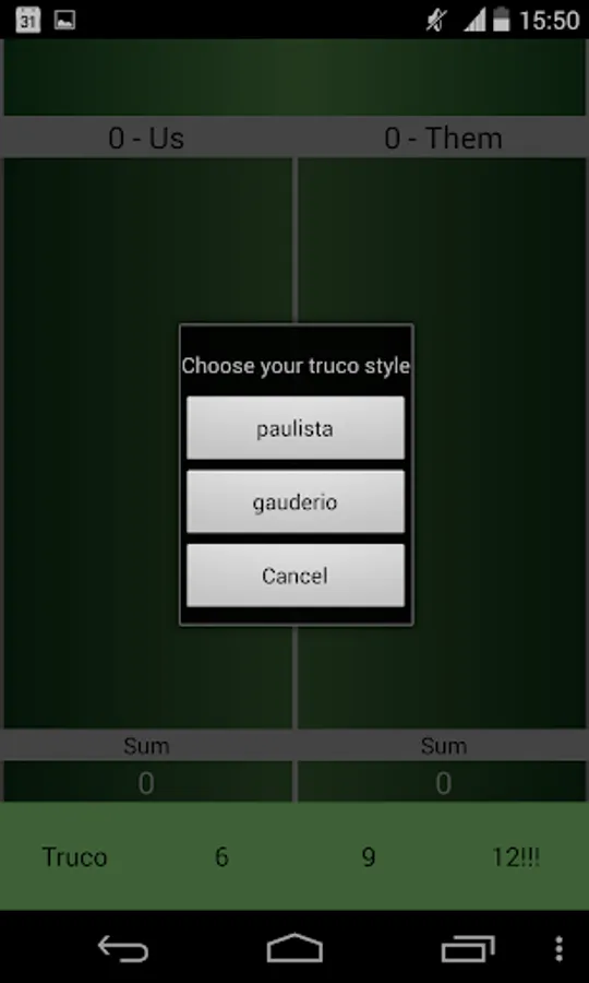 Score Board for the famous game "Truco", played a lot at South America countries.