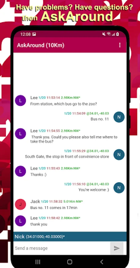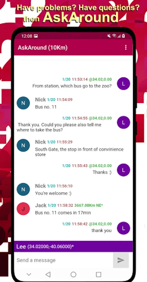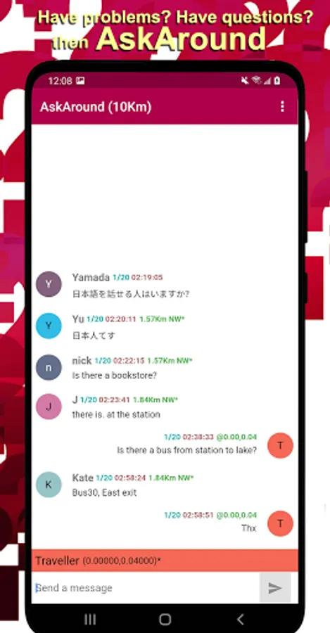 With this app, you can chat with and ask questions to people nearby without revealing your identity. There is no need to log in.