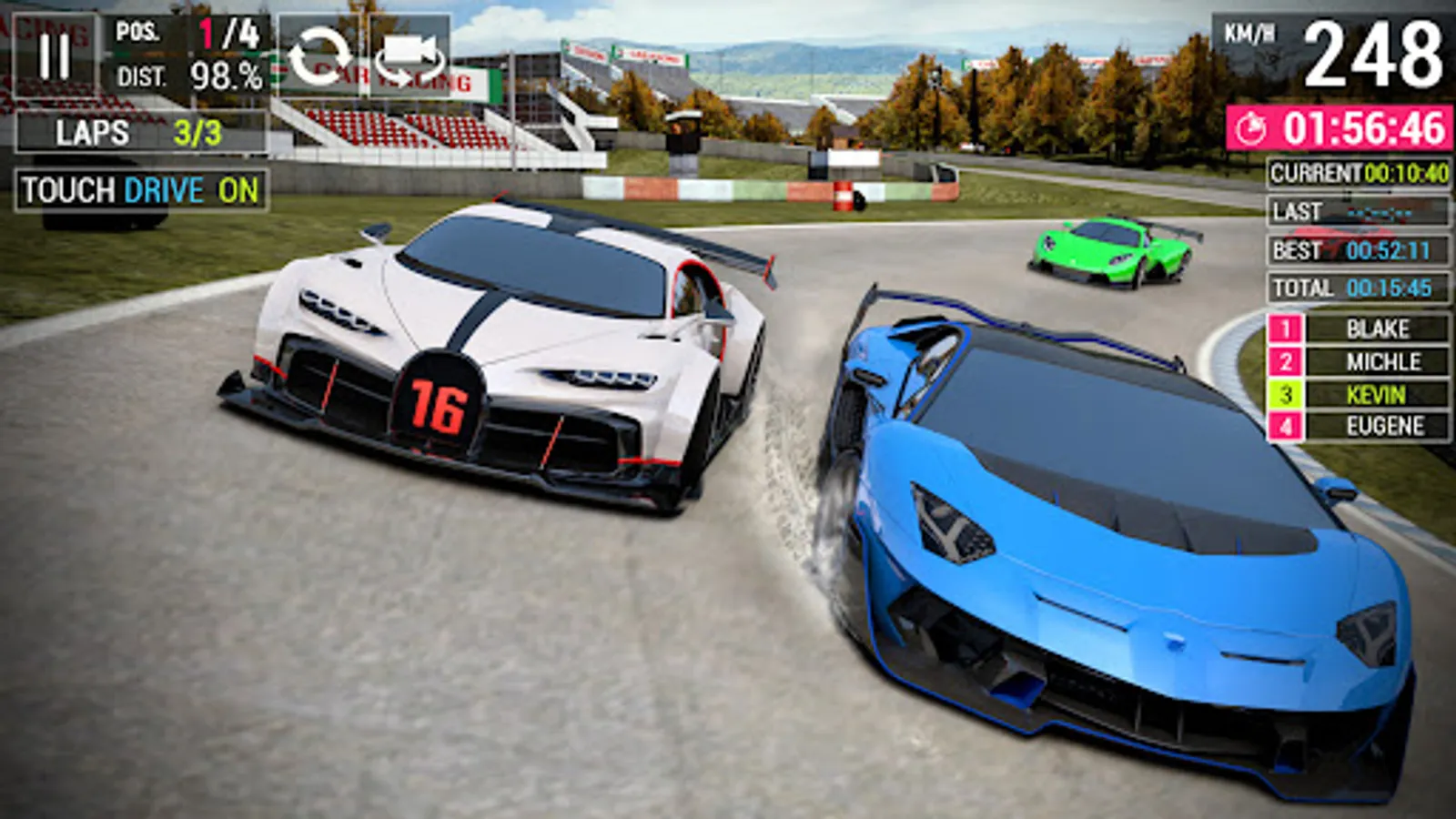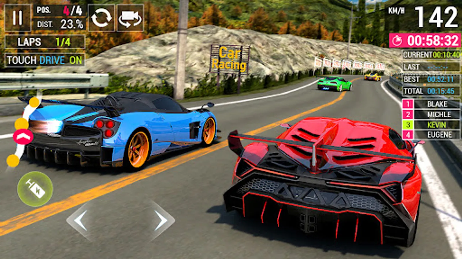 Control - Drive racing cars with easy car driving games controls like Touch & Tilt.