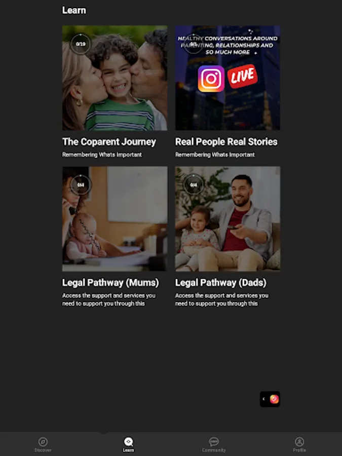 An app designed to help you feel supported and understood along your coparent journey. Gain access to a mum or dads only community as well as a number of free workshops/groups each month.