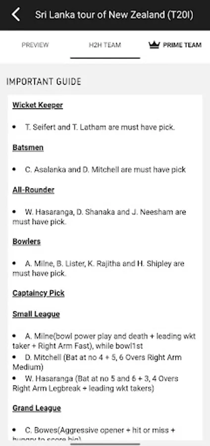 - 1 Prime H2H Team Valid for 3 Members & 4 Members on Dream11 App.