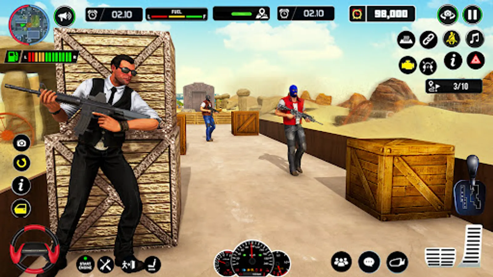 • Realistic atmosphere with cover Fire Shooting Games of grand theft.