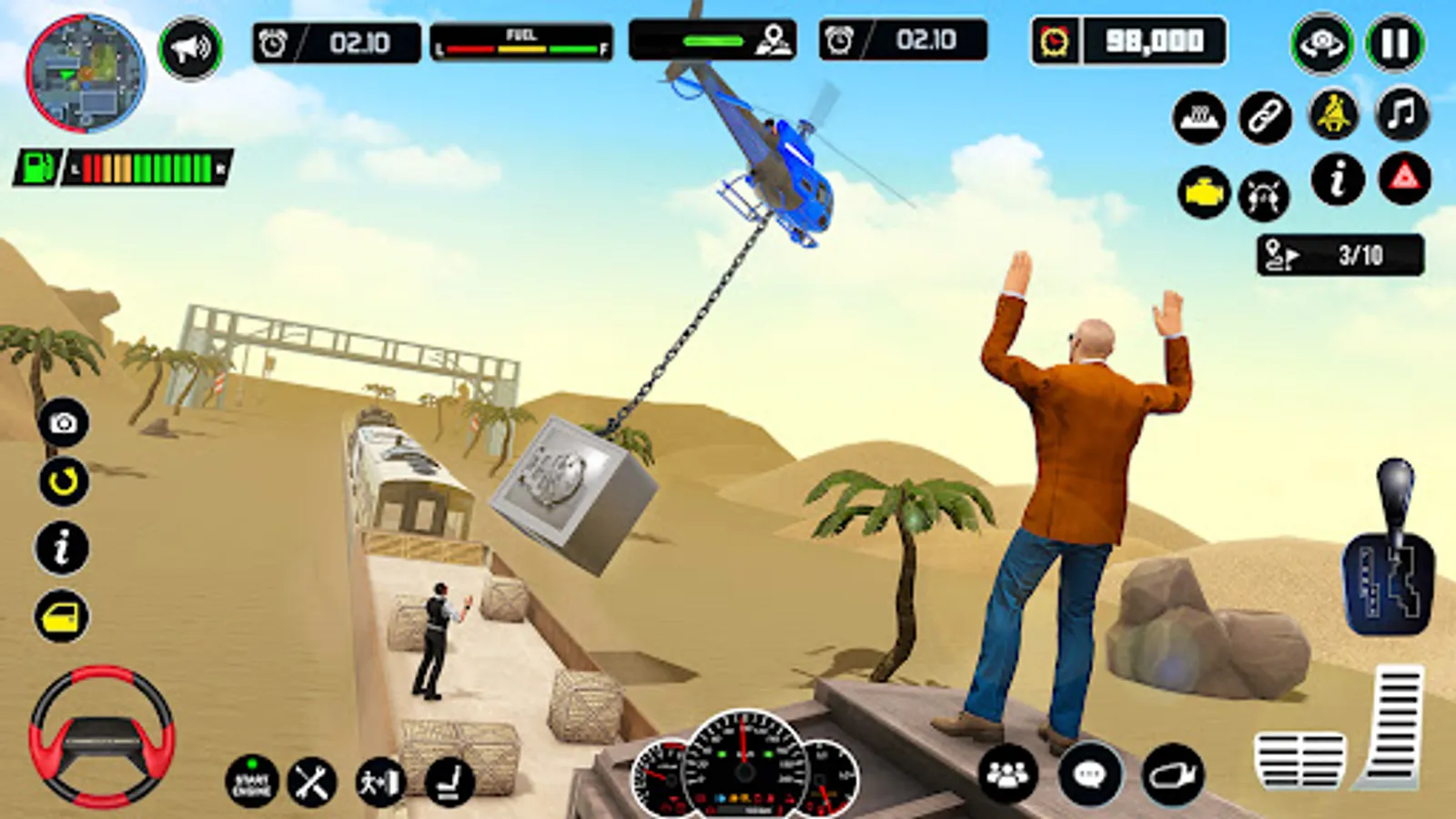 Gangster Crime Mafia City is an offline Game for Grand Theft in Vice City in which gangsters and mafia cartels are given the task to transport gold by train traveling through Crime City to other Gangster Vegas. Show your Western sniper shooting skills in the gangster games to shoot the mafia in the mafia gangster simulator and mafia city games for Grand Theft in Vice City.