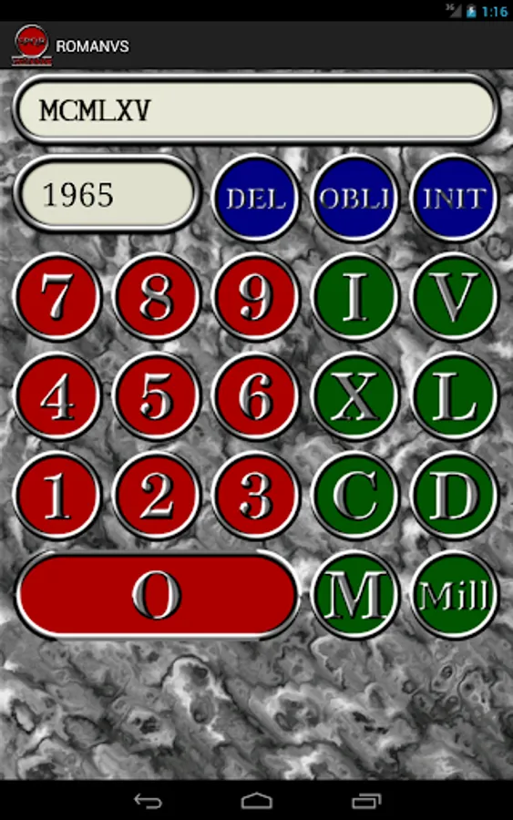 Application for conversion between decimal and Roman numbers.
