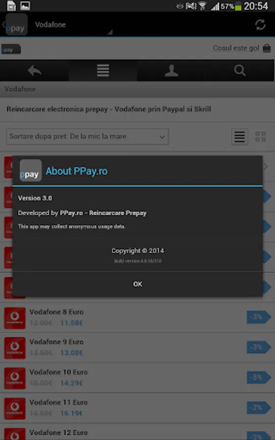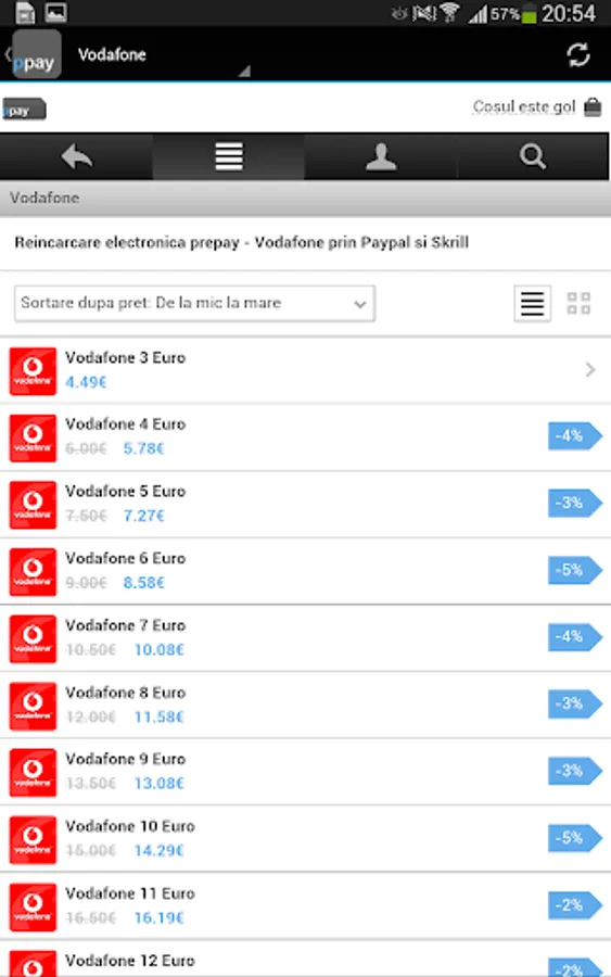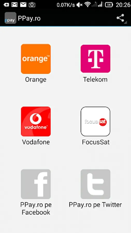 PPay.ro - Credit Recharge prepaid cards in mobile networks in Romania: Orange, Telekom (former Cosmote) and Vodafone pay by Paypal, Skrill (Moneybookers), Bitcoin or credit card. You can also recharge the prepaid credit cards Lycamobile Romania, Indygen, Zapp, Click, Nobel or watching satellite TV stations from FocusSat. Payment is made on secure servers secure. Customers can choose to recharge directly credit number (topup recharge) or receive a recharging code on an email address.