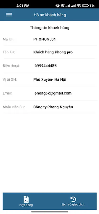 The application supports creating orders, checking contract information, checking inventory