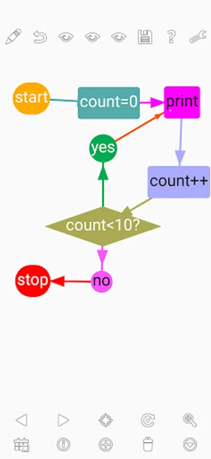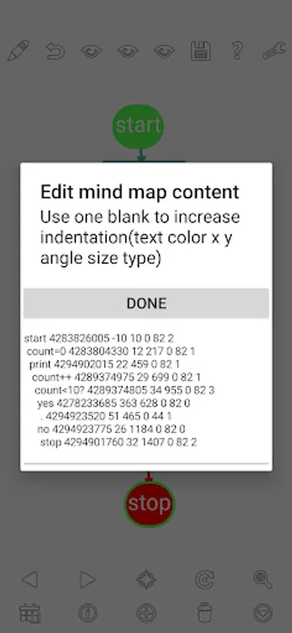 Edit: Edit the flow chart content(use a blank space to increase the indentation: Color coordinateX coordinateY angle size type)