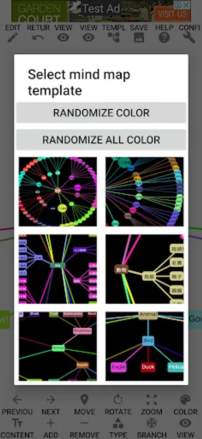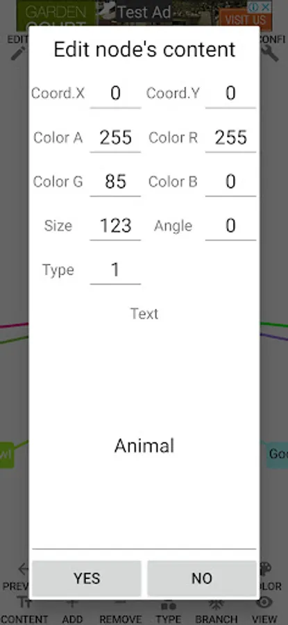 Edit: Edit the mind map content(use a blank space to increase the indentation: color::coordinateX::coordinateY::angle::size::type)