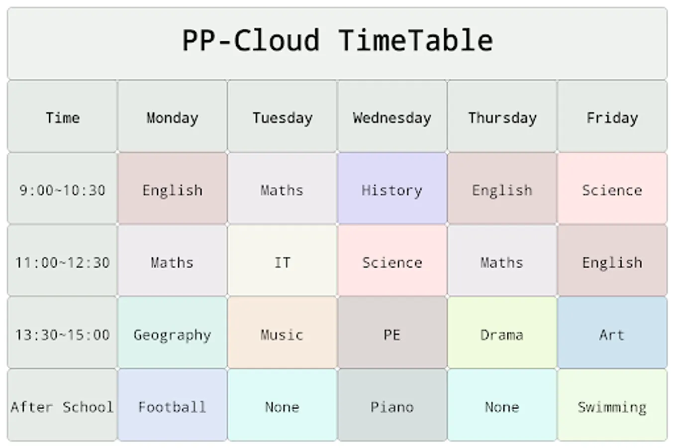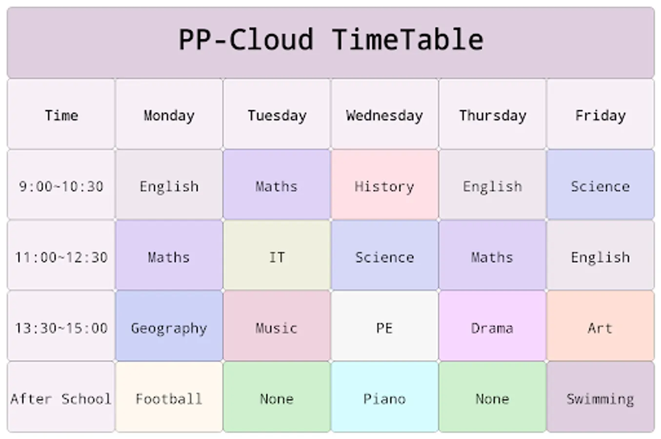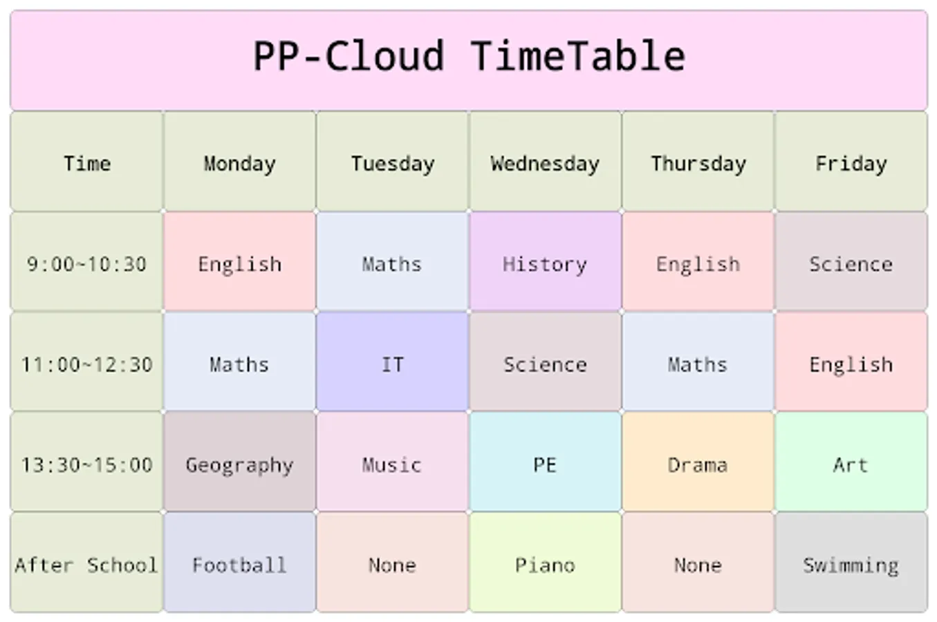 Edit: Edit the time table content (use one blank to increase the indentation)