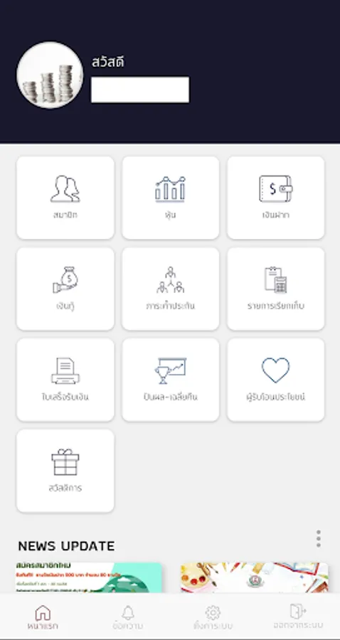 Application for members Allowing members to check their deposits, loans, shares, print receipts, etc.