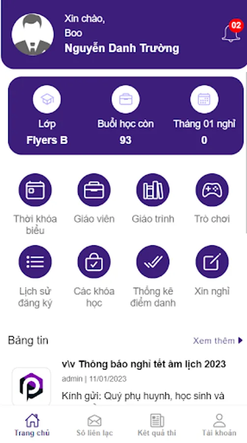- Help parents update the fastest information about the learning situation, the notice from the center.