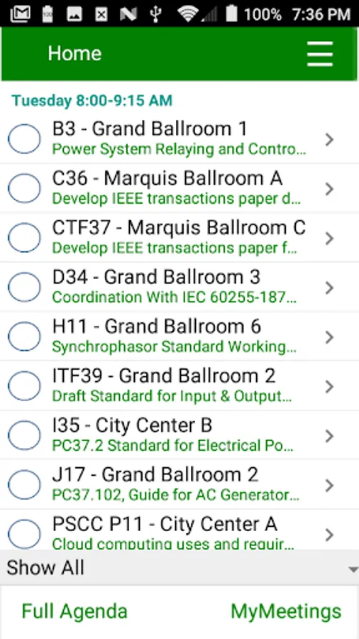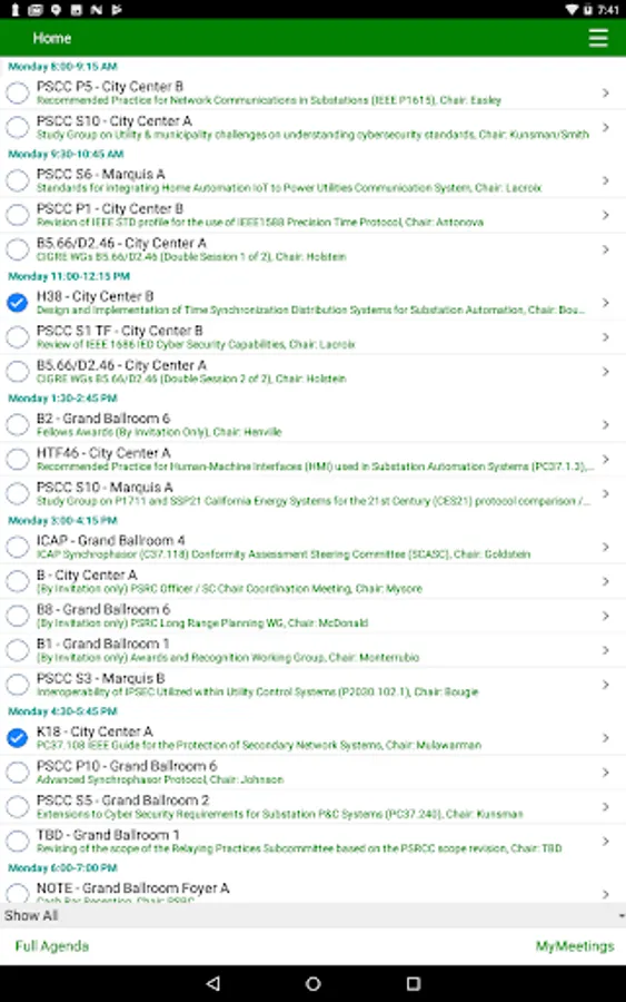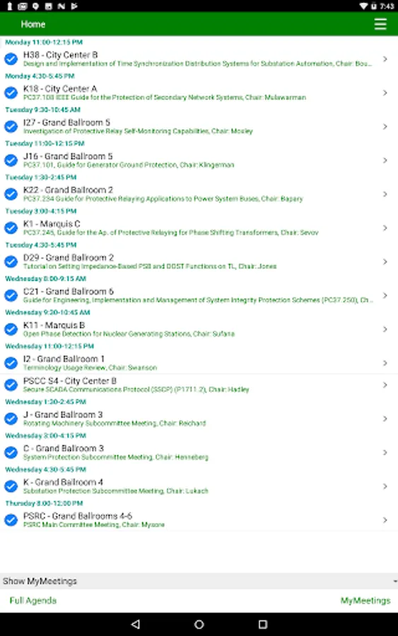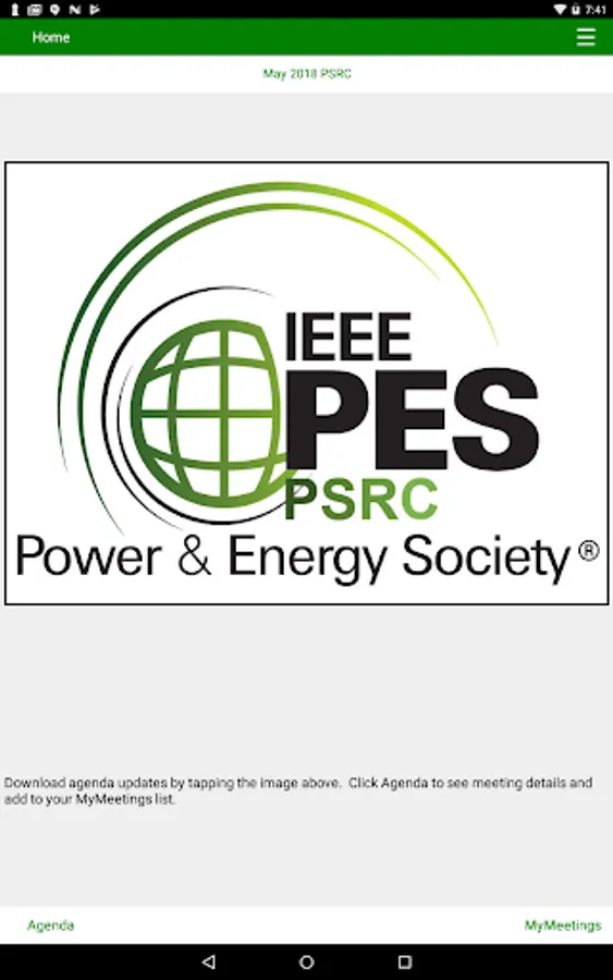 PSRC Agenda is a simple to use tool to view the latest IEEE Power System Relaying & Control meeting agenda. The MyMeetings feature lets you easily maintain a list of the meetings you plan to attend. Simply click the home screen image to check for agenda updates.