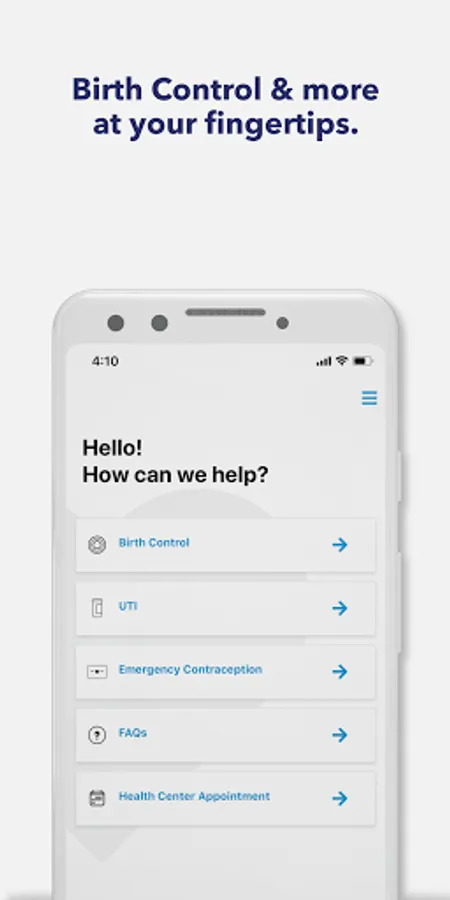 • Pharmacy pickup options for birth control pills, patch, or ring prescriptions.