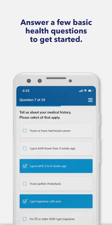 3. Answer a few health questions so clinicians can determine what's best for you.