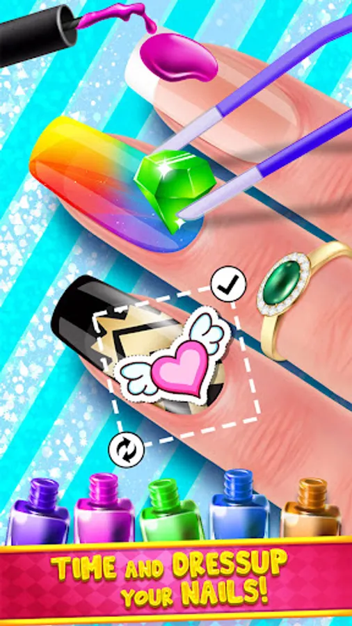 In the nail polish game, do manicure and pedicure in this glitz and glamour makeup artist games to present the glossy look in wedding artist games on your special day, makeup game, and nail polish game. Multiple nail art design colors with stickers make you enjoy the makeover nail polish game. Try the new game, acrylic nail designs in a new game for girls being a nail art designs master - makeup games. Nail polish and decorate your nails and show your super glitz and glamour with a glossy look in a nail polish game. New games for girls bring different nail polish art designs for the lovers of fashion games of nail art 3d for nail repair. Super stylish nail art design nails games make your hands and nails more glossy & shiny in the nail polish salon- free nail polish game for girls and makeup game.