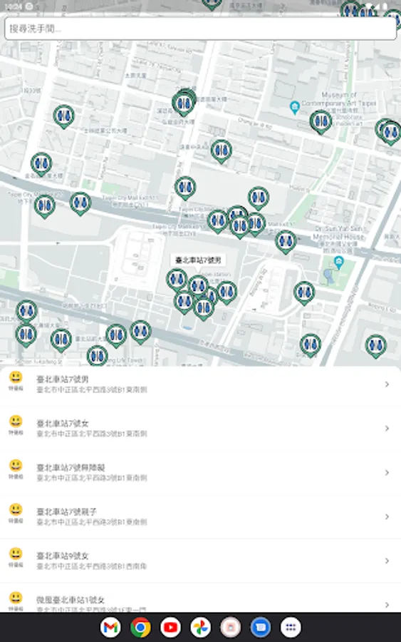 "Restroom Map" is an application tailored for Taiwan, dedicated to displaying the information of public restrooms in Taiwan at a glance on your mobile phone. No matter where you are, as long as you open the "Restroom Map", we will be able to guide you to the nearest restroom in real time.