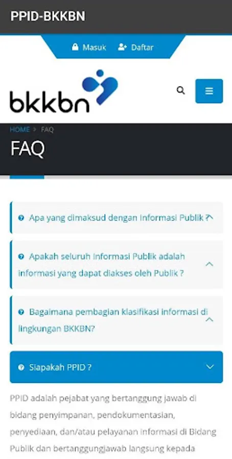 The provision of public information services at the Population and Family Planning Board (BKKBN) is based on the Regulation of the Head of BKKBN Number 163 / PER / D2 / 2011 concerning Guidelines for Information Management and Documentation in the National Population and Family Planning Agency. PPID The National Population and Family Planning Agency and PPID supporting devices are responsible for storing, documenting, providing, and / or providing public information services within the National Population and Family Planning Agency.