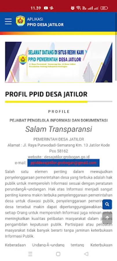 This application is an application for the Information Management and Documentation Officer (PPID) for Jatilor Village, Godong District, Grobogan Regency, Central Java