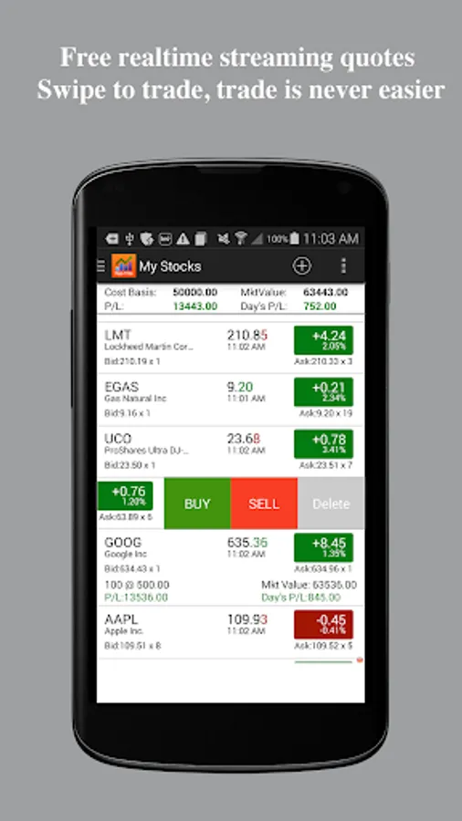 Real-time Stock Tracker +Alerts - The most comprehensive stock app in the mobile world. Brings you free streaming live stock price with level I quotes, pre-market/after-hour quotes, portfolio monitoring, advanced full screen chart,market signal scans and many more...