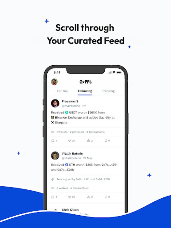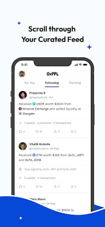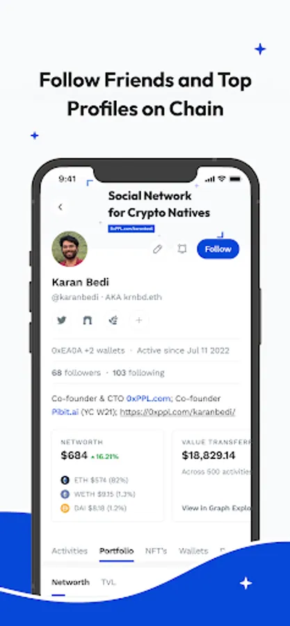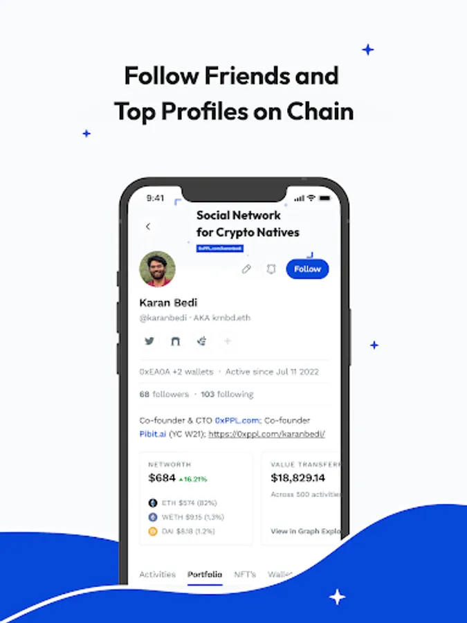 - Follow your friends and top profiles on chain