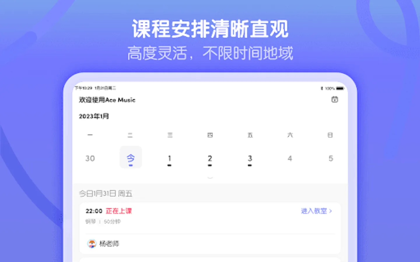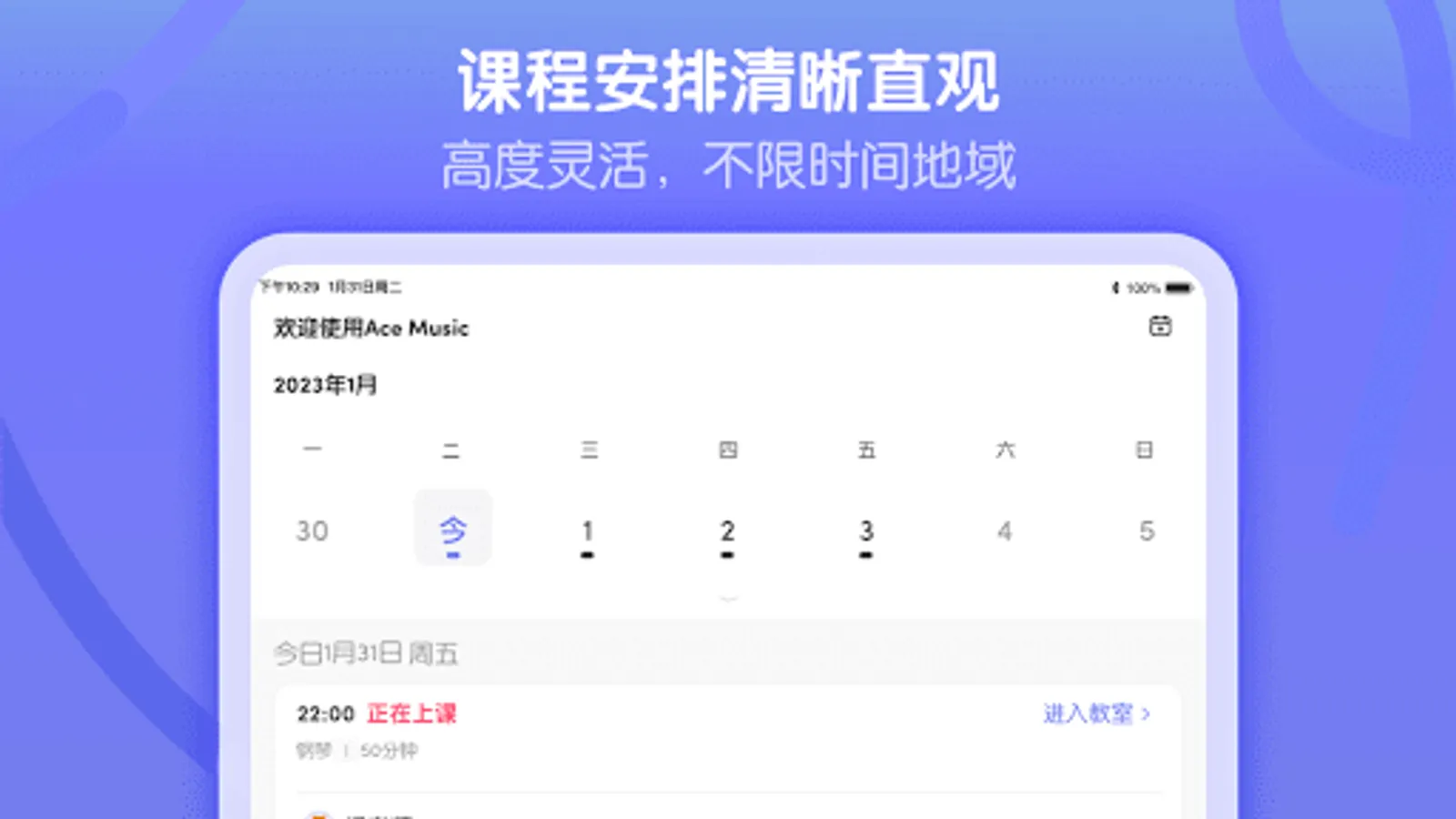 通过“Ace Music”App,用户即可连接到知名音乐院校的老师进行在线的一对一乐器陪练。老师通过听音和辨音方式解决孩子音准节奏的问题,还可以通过琴键可视镜头,纠正学员音准节奏以及学员练琴过程中的手型指法的问题。