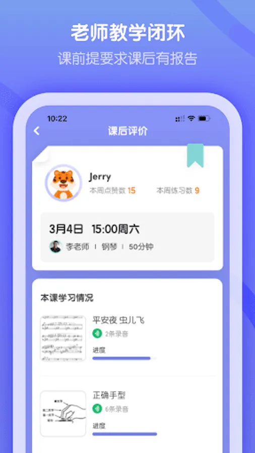 1、海量严选优质教师队伍,来自全国各地的专业音乐院校。经过专业化、统一化的教学培训,确保用户在平台享受到高质量的乐器陪练服务。