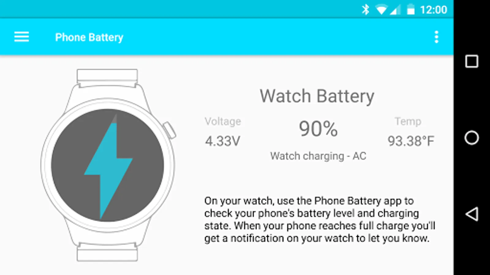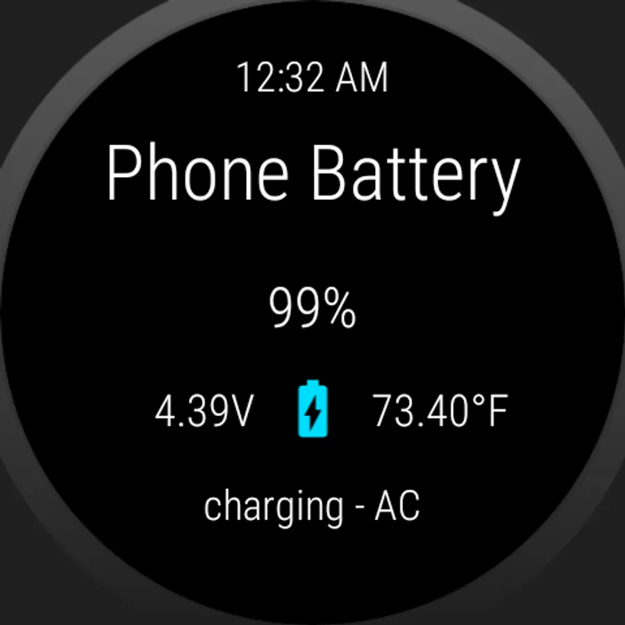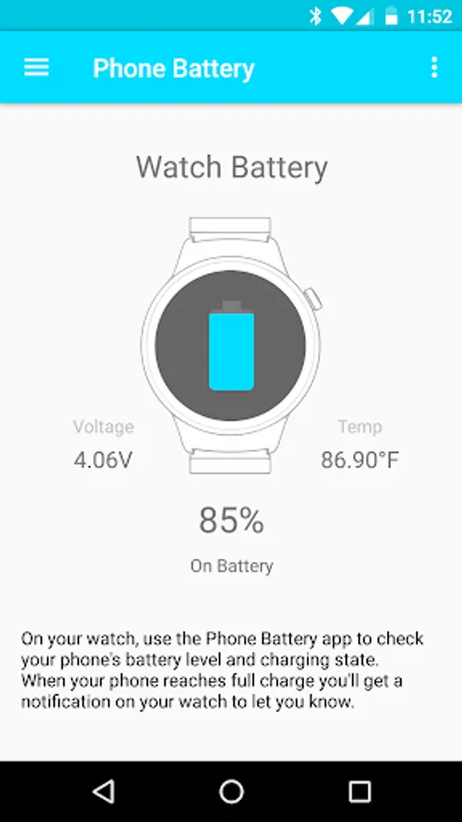 Check the battery level of your phone any time by opening up the app on your Android Wear Watch.