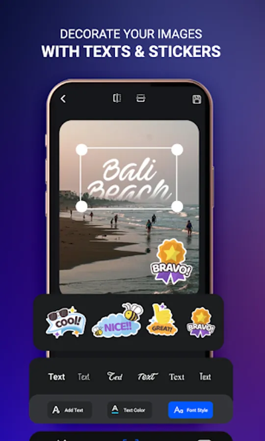 - Edit image with image editing tool within the app - crop, filter, sticker etc.