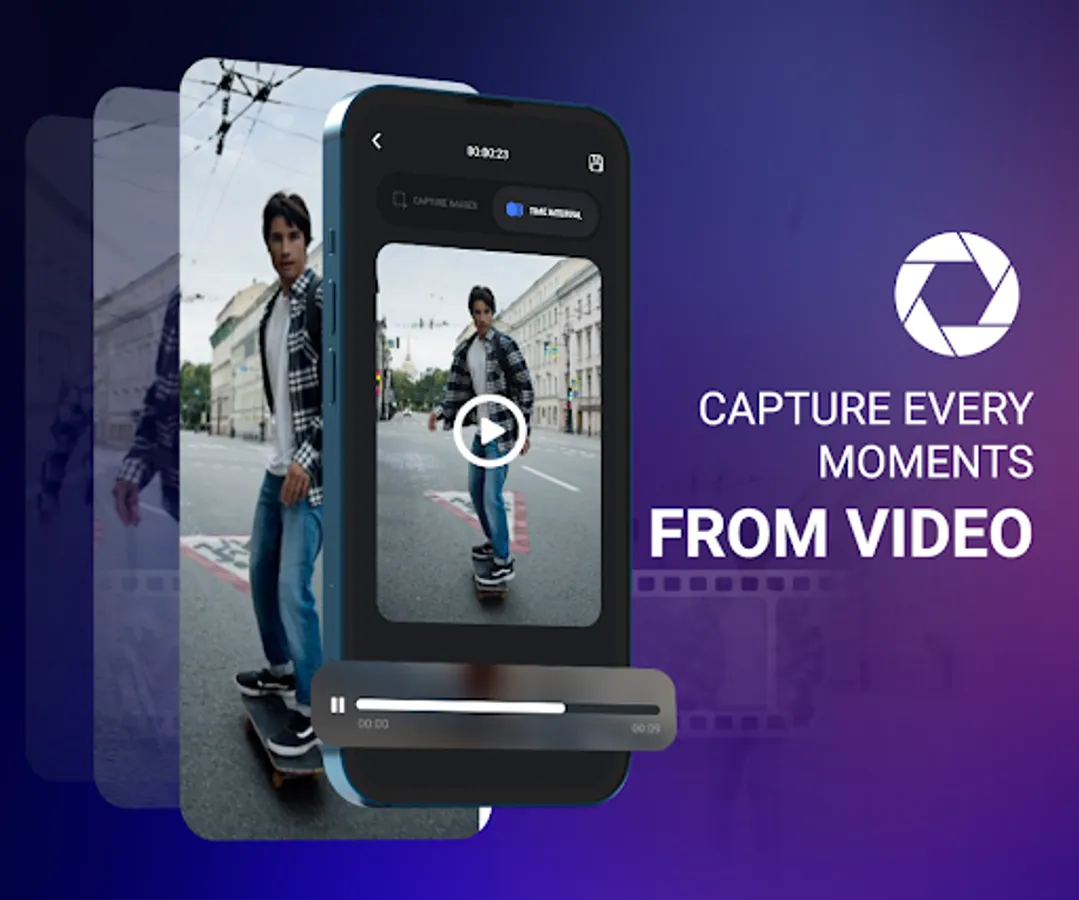 Grab photos from your videos. Grab single photo at a particular time on your video or grab multiple photos at particular time interval. Edit your photos with built-in image editing tools like crop, photo filters, add stickers, write text, etc,.