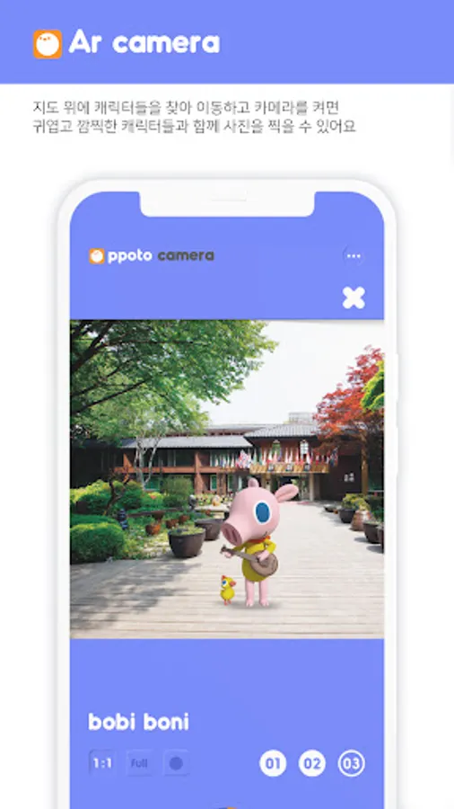It is a camera app that gives more fun and new AR content, photos taken with various cute characters, and new joy to your travels.
