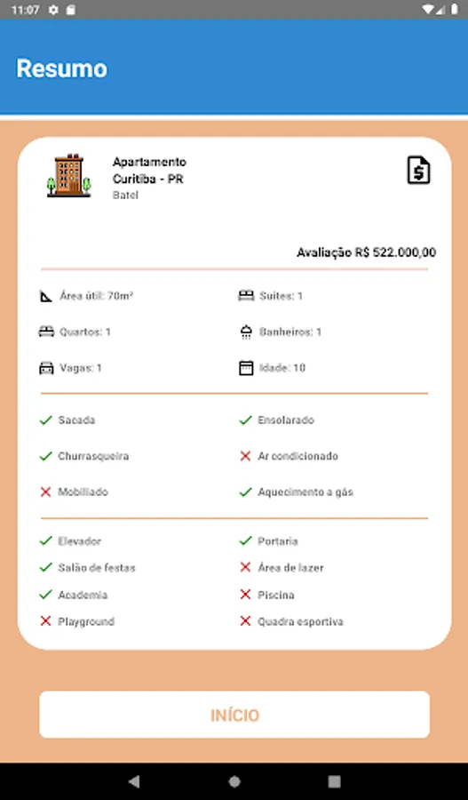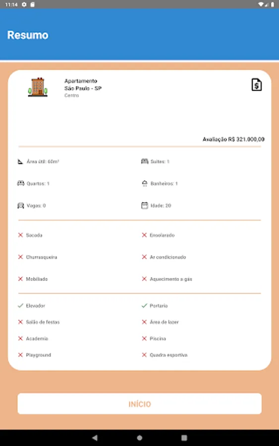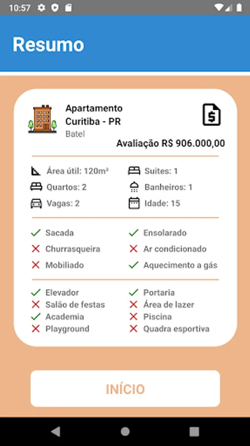 Through a neural network model, the artificial intelligence of the app valuate an apartment based on the information provided by the user.
