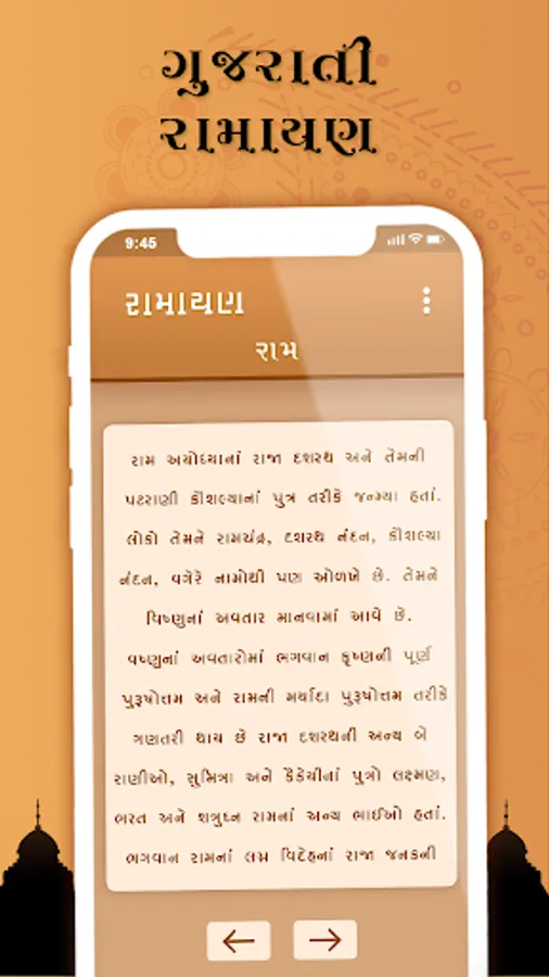 The only available gujarati translation of Ramcharitmanas or ramayan, this great poem is made available on this application for the first time. One would derive great pleasure by just reading the gujarati version as it keep intact the storyline. The tune and meters of poetry are also not exactly replicated in gujarati yet, in their own they are pretty consistent.