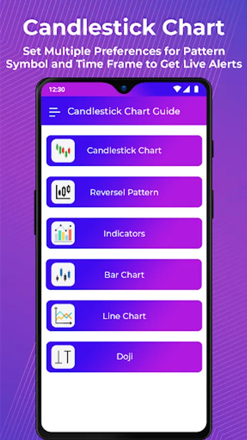 This Candlestick Pattern - Candlestick Chart Analysis app will teach you how to trade using chart patterns, price action, how to read the confluence of indicators, and more. It includes entry and exit strategies, indicator settings, timeframes, pro tips, images, and actual examples.