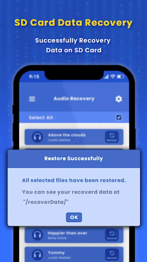 SD Card Recovery - Recycle bin is a powerful tool that easily recovers Recover lost files and deleted music, recovers deleted videos, recovers deleted images, restoring photos, restoring videos, restoring audios.