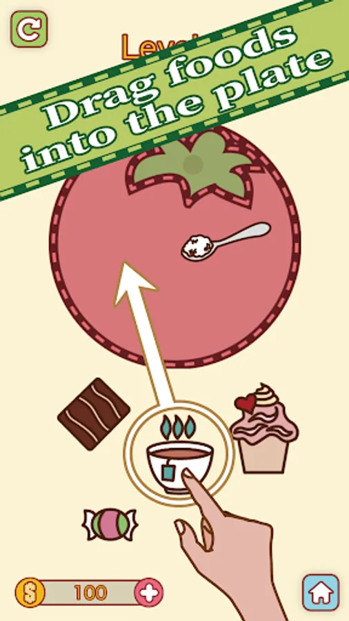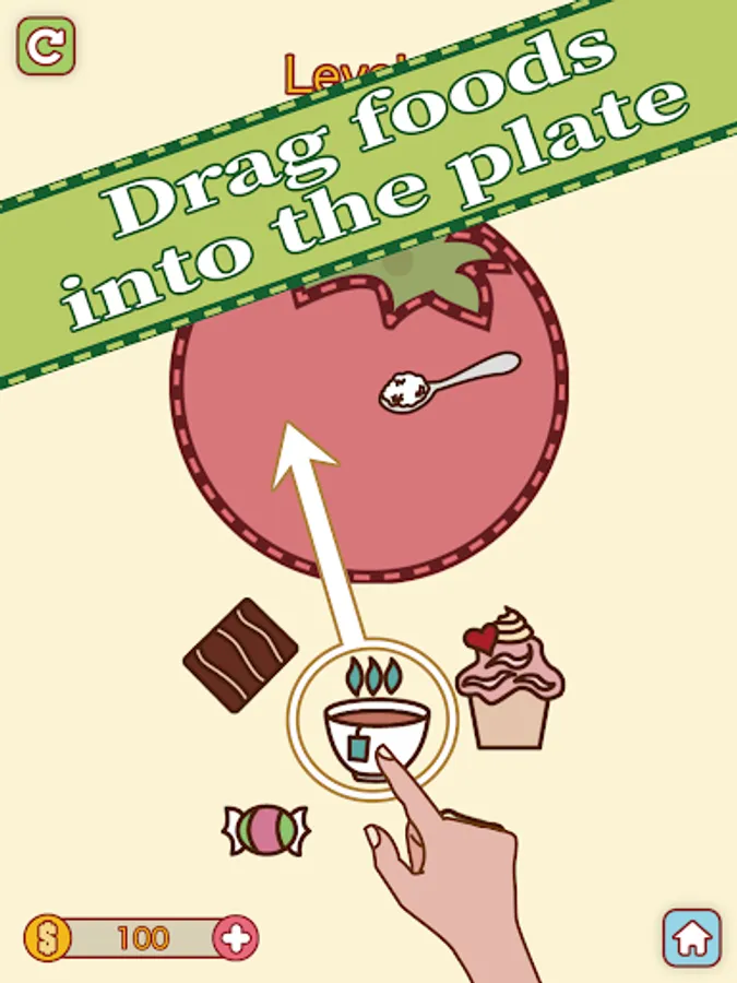 You just need to drag all foods and stuff on the dish and keep all foods without collision or crash.