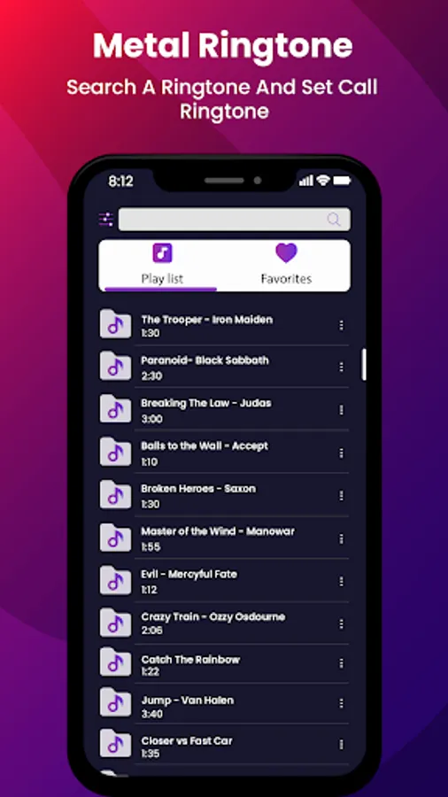 If you want to personalize your device, it contains great mixes and a great variety of metal songs with a great mix of 80s heavy metal that you can modify on your Android phone as message tones.