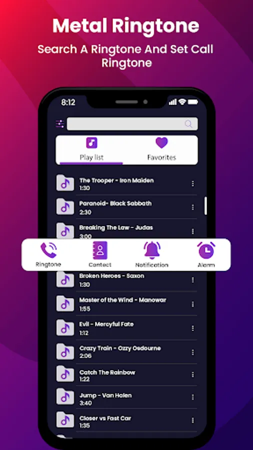 Heavy Metal Ringtone app is the great collection of Heavy Metal music as unique Heavy Metal Ringtones which you can use as ringtone, notification tones, alarm tones, or assign to a contact directly and much more.
