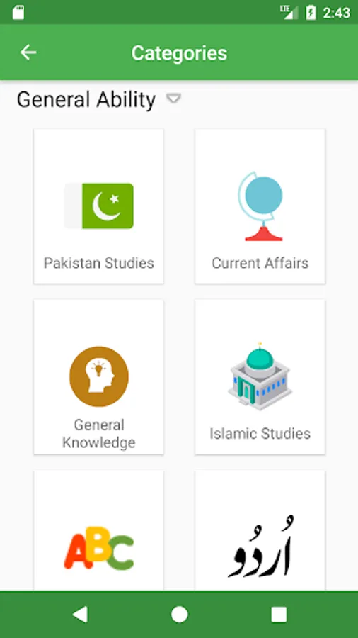 General Knowledge, Current Affairs, Pakistan Studies, Islamiat (Islamic Studies), English, Urdu MCQs