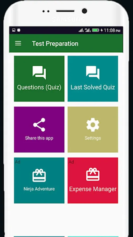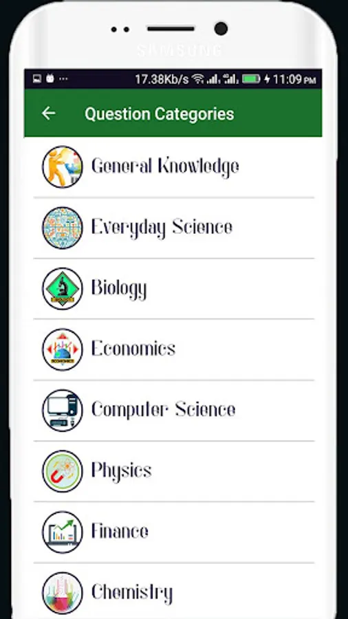 This App also contains other categories tests. Eg. General Knowledge, Current Affairs, Subject Tests (Chemistry, Computer Science, Physics, Biology, Math, English, Finance, Economics etc).