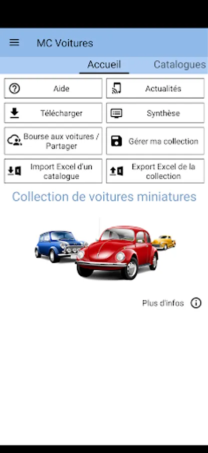 - Import/Export your personnal catalogs and its collection as an Excel file.