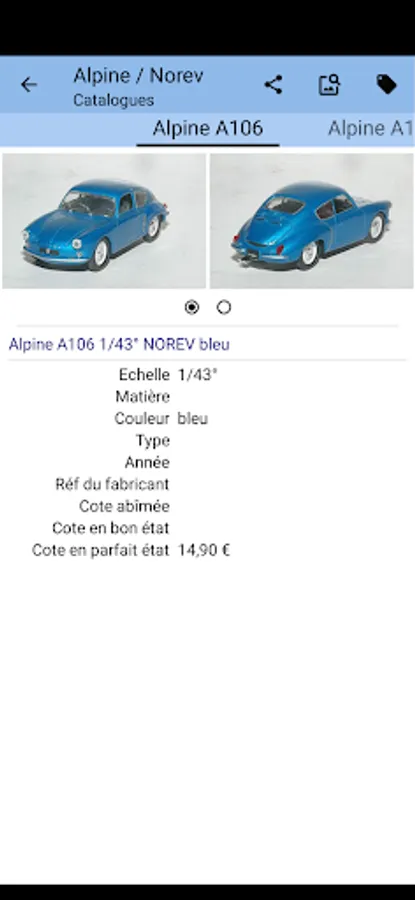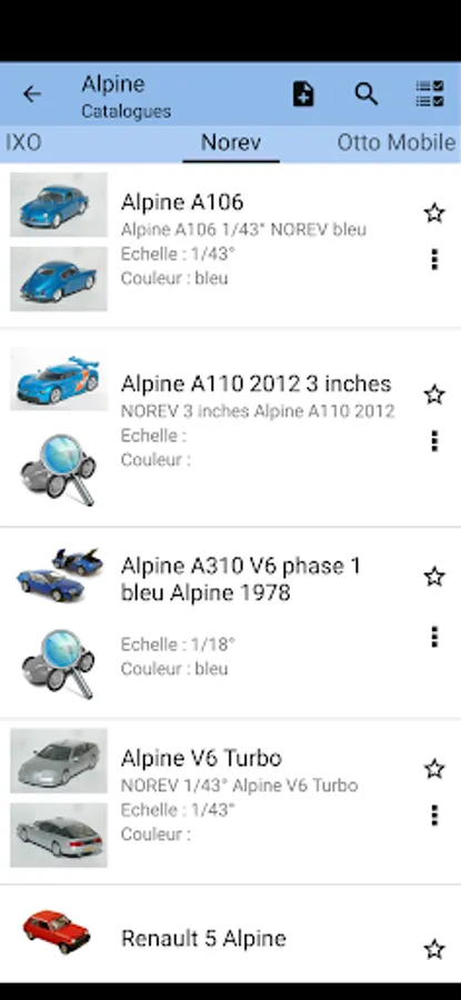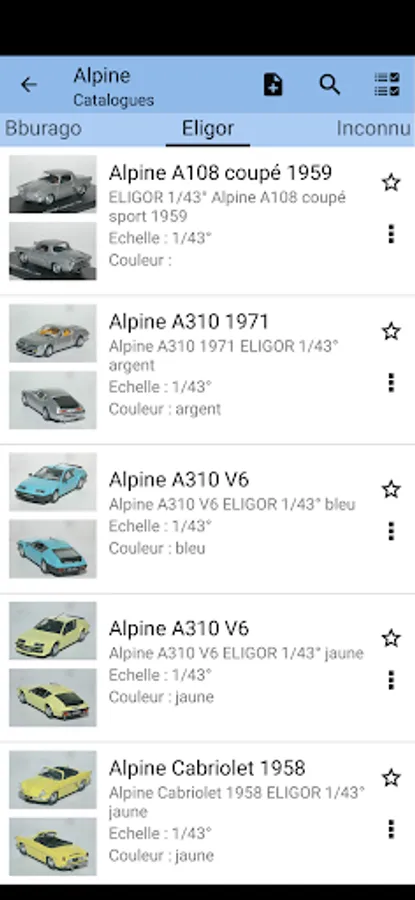 - Catalogs containing more than 14500 toy cars for 33 car brands : Renault, Peugeot, Citroën, Ferrari, Porsche, Volkswagen, , ...