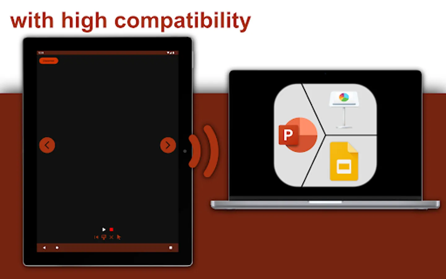 Control your presentation with your Smartphone. For this, you need to install PPTControl Desktop on your computer. After the installation, you can select the computer on your device. While selecting, a request is sent, which can be accepted in the PPTControl Desktop application. After successful pairing, you can block new requests so that only you have control over your presentations.
