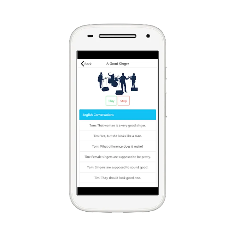 To be able to study English well. In addition to the basic vocabulary, the subject of dialogue. In English, it is very necessary and very important as well. English conversation app for entertainment It compiled a dialogue on the subject of entertainment, entertainment industry, whether it is to watch movies, music, games are abundant in the form of reading and voice chat. This allows us to properly pronounce and accent the characters Tom and Tim. We have a number of English conversation lessons about entertainment. Which consists of