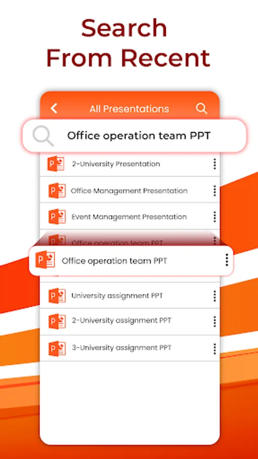 If your phone contains too many powerpoint slides documents, it is difficult to find exact document. So, we are offering you the feature by which you can separate your important document from others and add into favorites to view documents quickly. Professional presentation opener also contains search bar by which you can find documents quickly. It’s really hectic, to find specific document from many files, so with the search bar you can easily find document which you want.