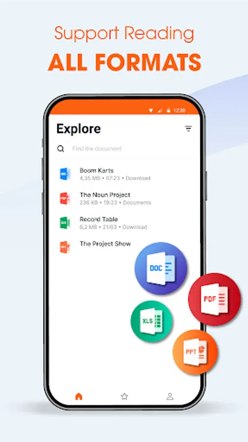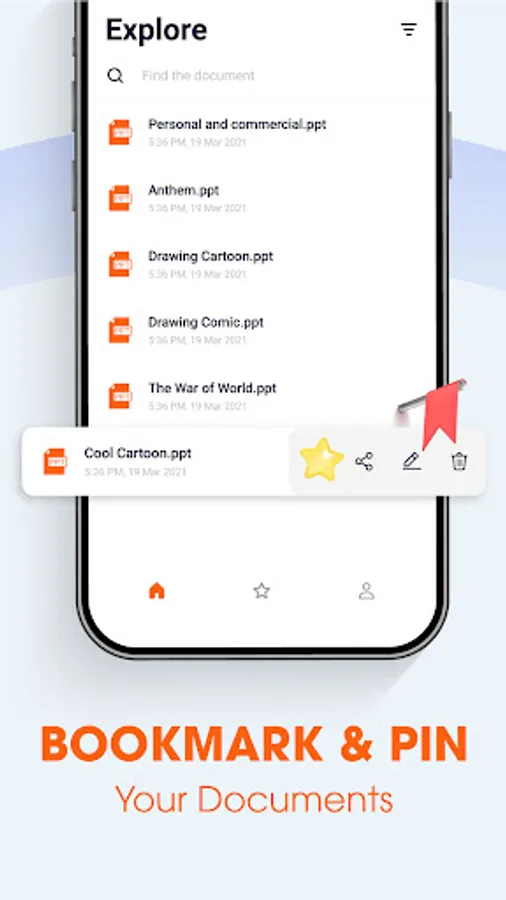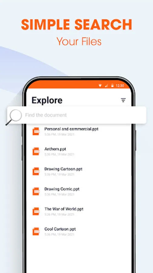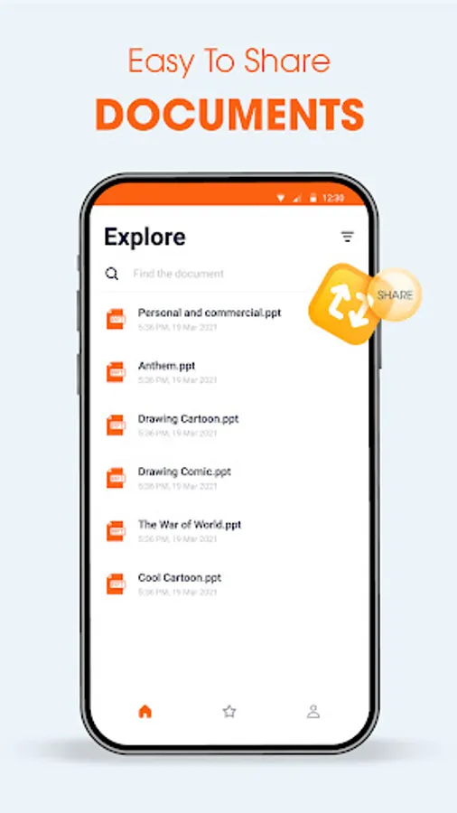 Document files with PDF, PPT extensions will be shown directly on the appβs homepage without taking time to upload a list of PDF & PPT files. Users can view and open all files easily and quickly.