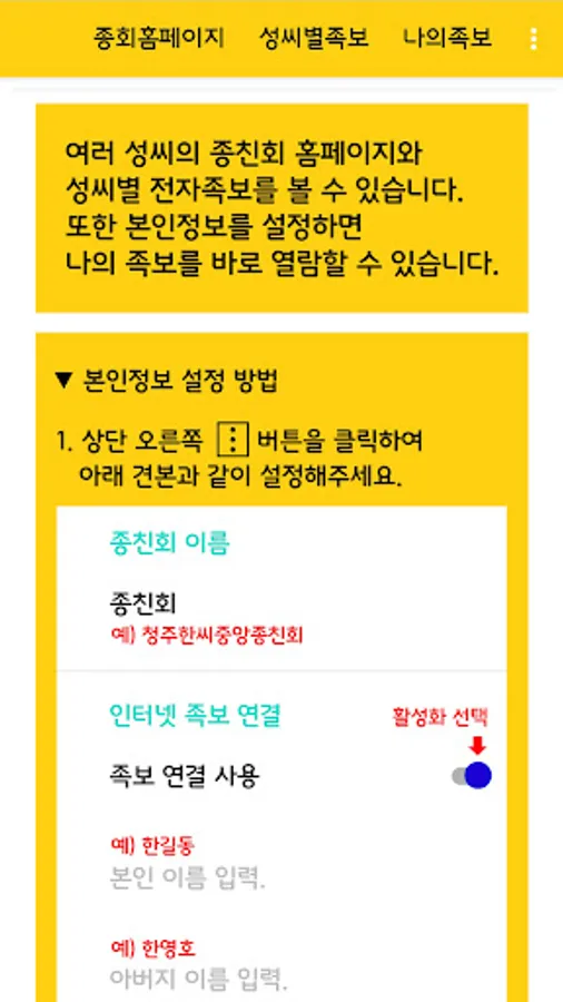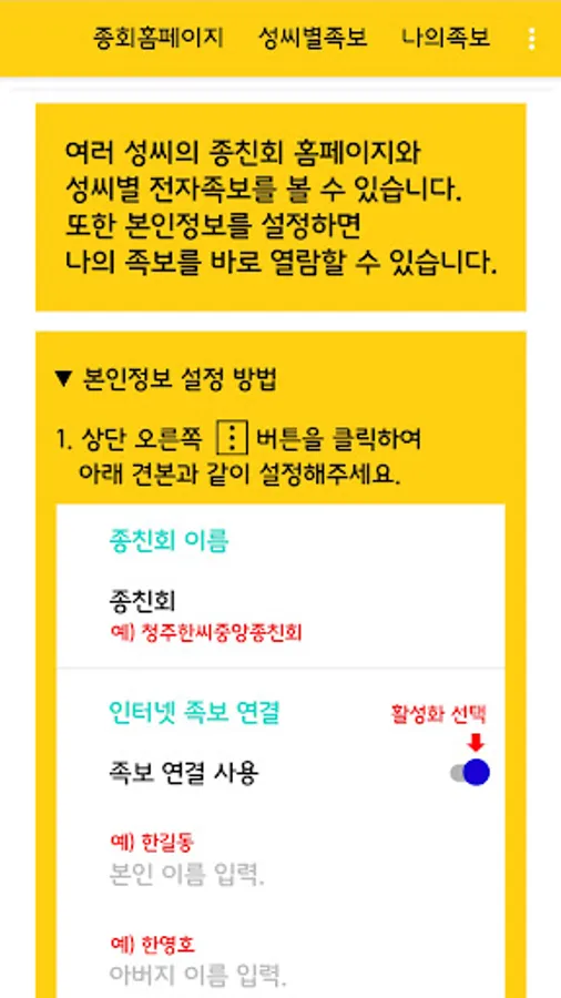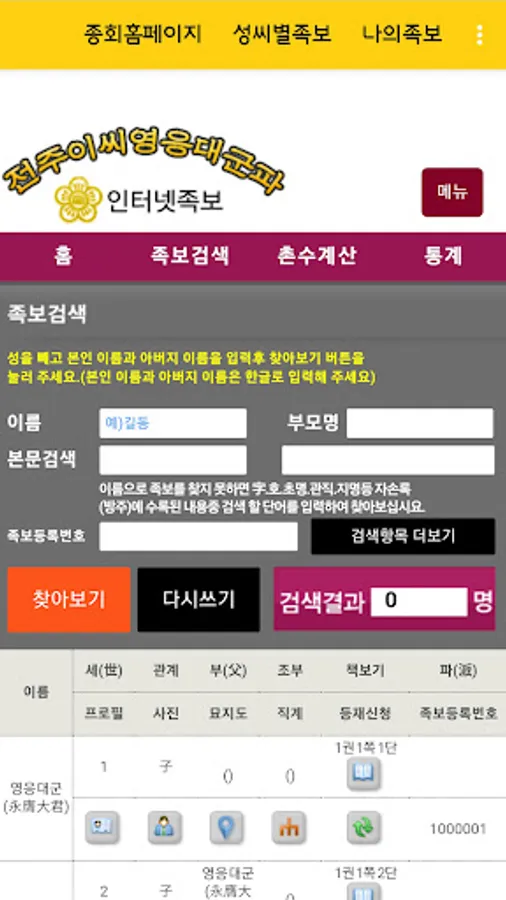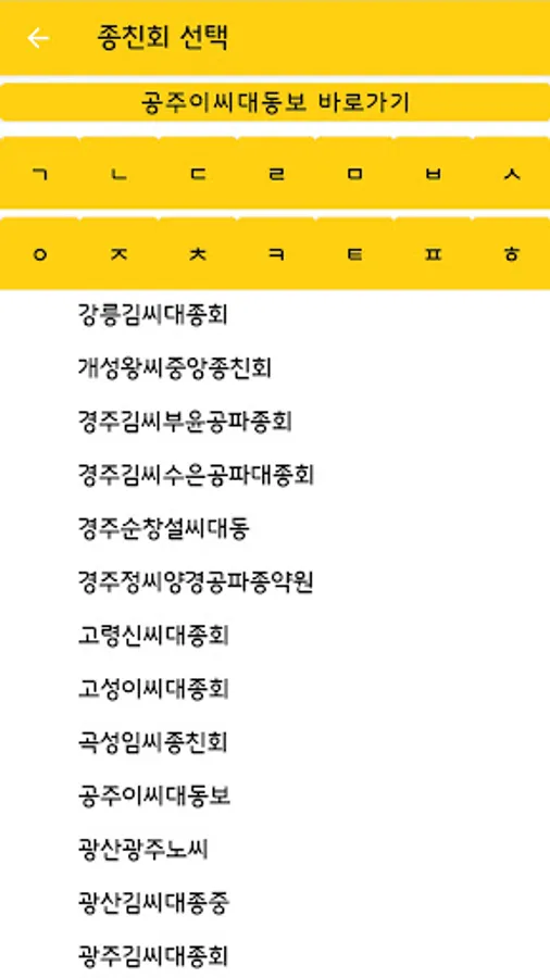 You can search for a list of Jongchinhoe homepages belonging to Korea and go directly to them.