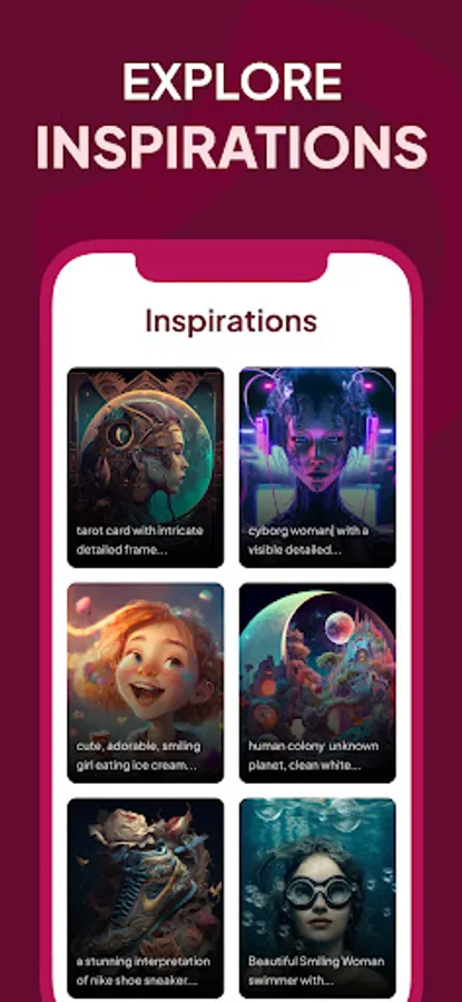 Transform your words into stunning visuals with our text to image generator app. Our AI image generator offers a range of features, including text to AI art, text to image generator, and image creator. With our app, you can quickly and easily create AI-generated photos, portraits, and profiles.